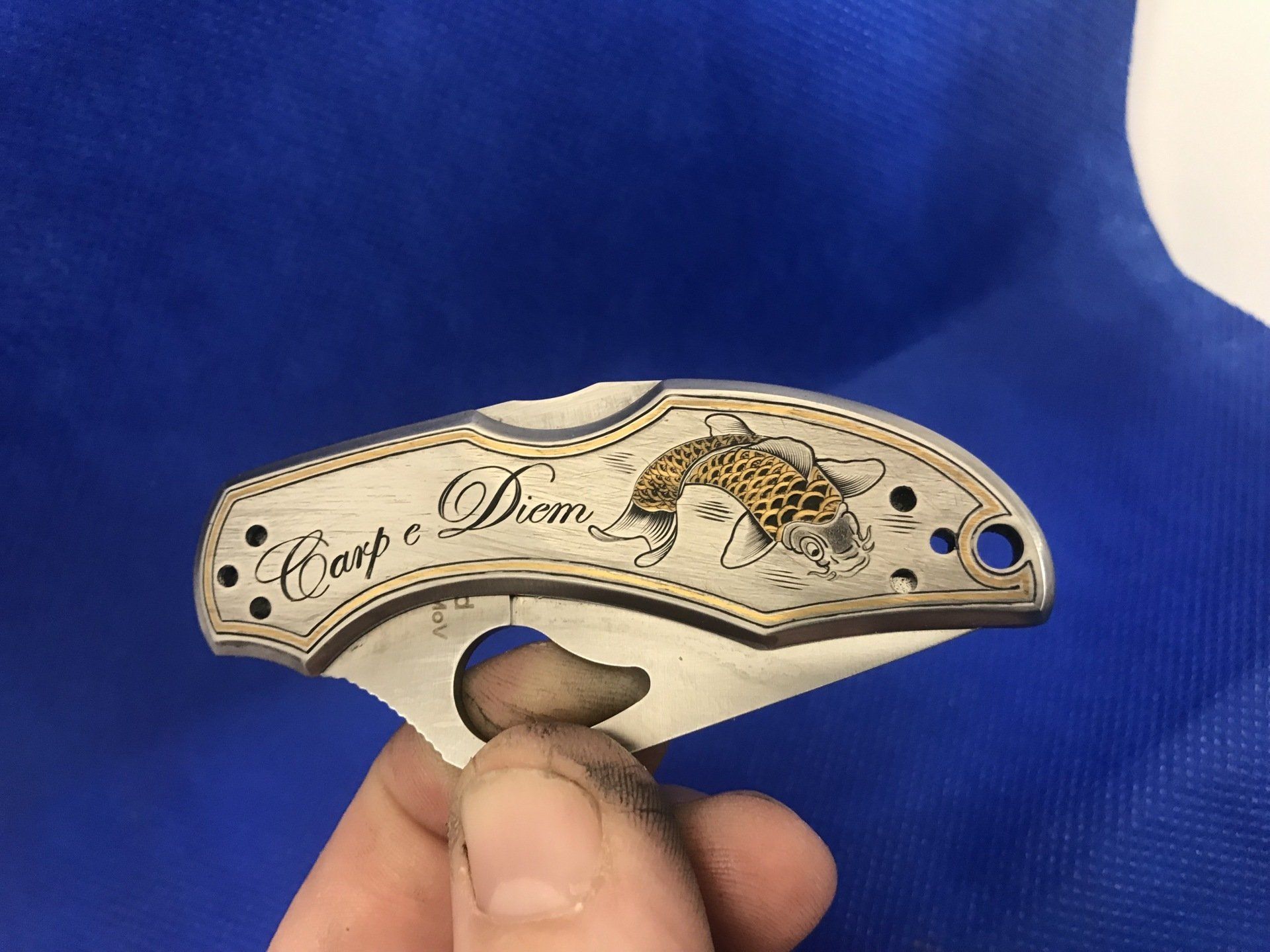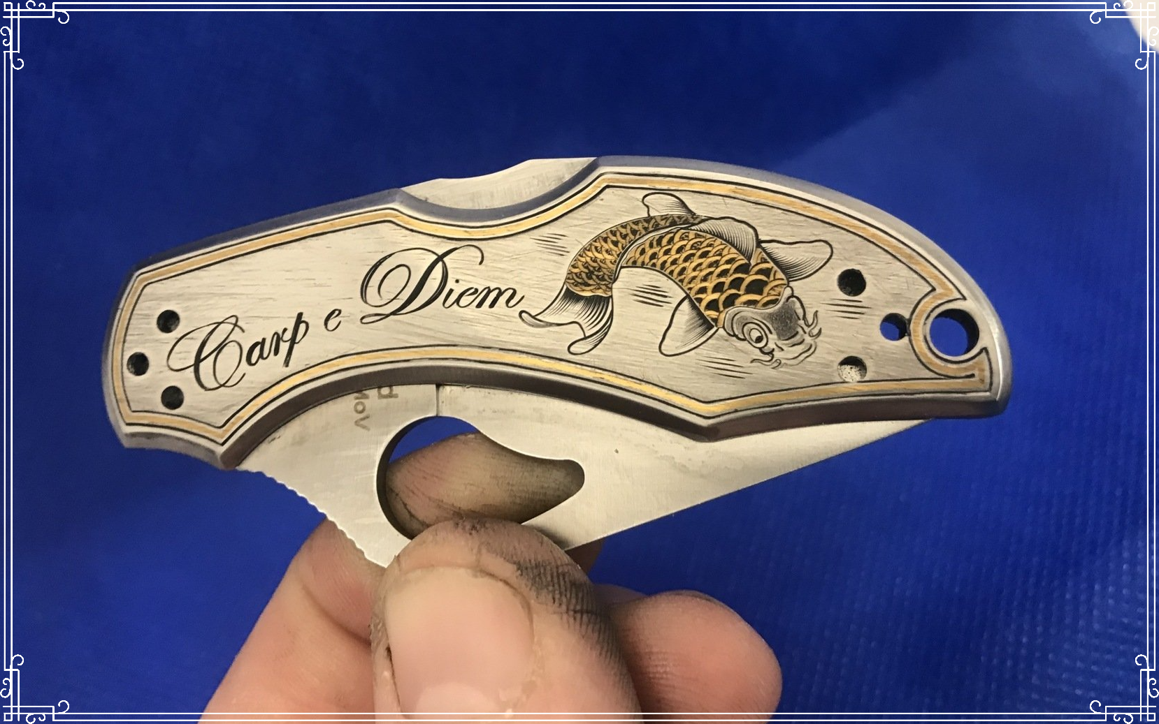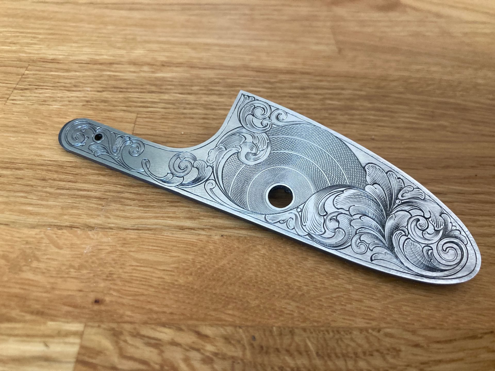 Just wanted to say a huge thankyou for the beautiful engraving that you done on my grandads ornamental penknife .The detail of the scroll work is absolutely breathtakingly .The craftsmanship is incredible and in this day and age of mass produced manufacturing it is a pleasure to find someone that still has the talent and skills to do this type engraving by hand. I look forward sending you more pieces to engrave for me. Truly thankfully.